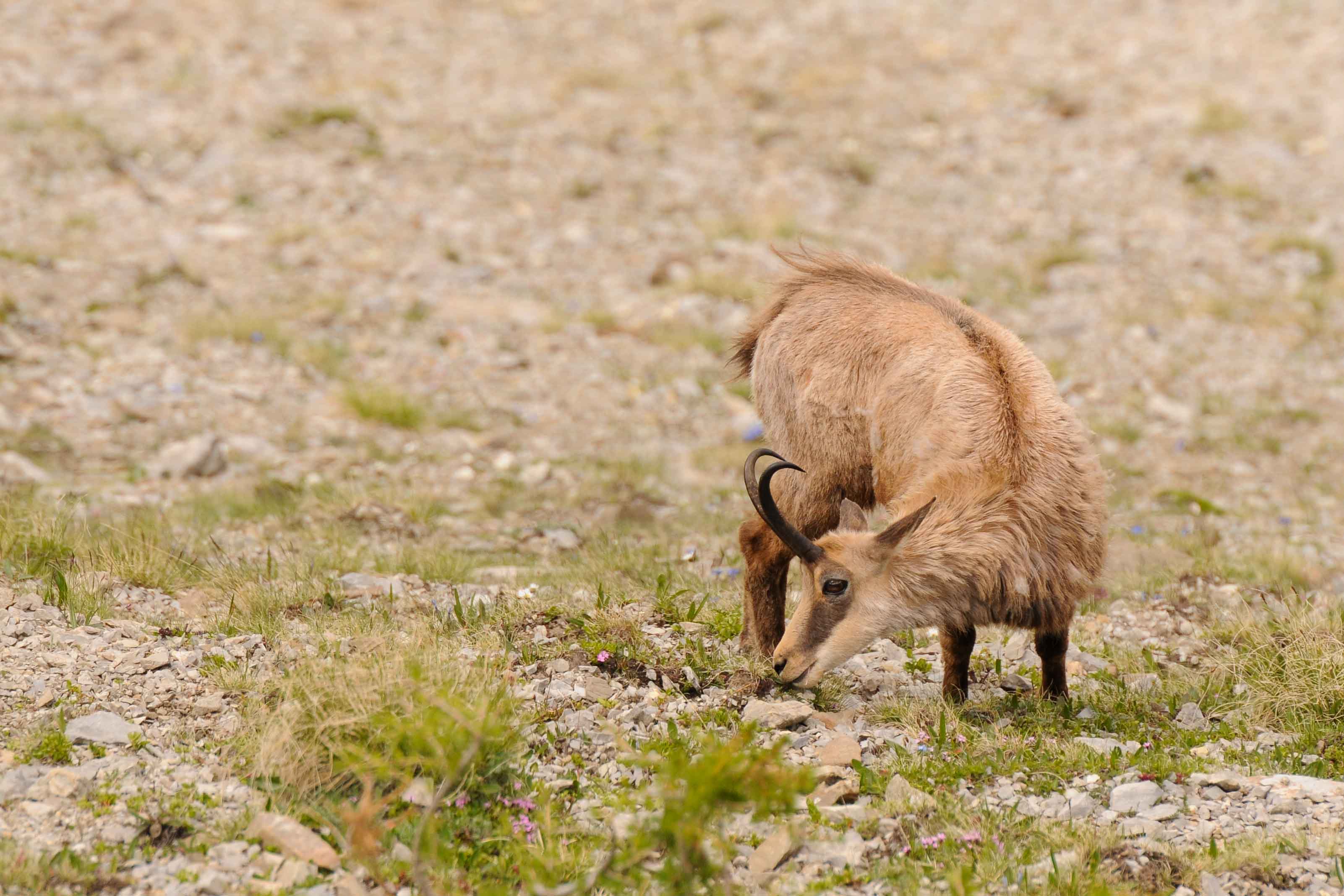 Le Chamois est un herbivore. Il se nourrit principalement de plantes herbacées, de graminées et de légumineuses et plus rarement de végétaux ligneux.