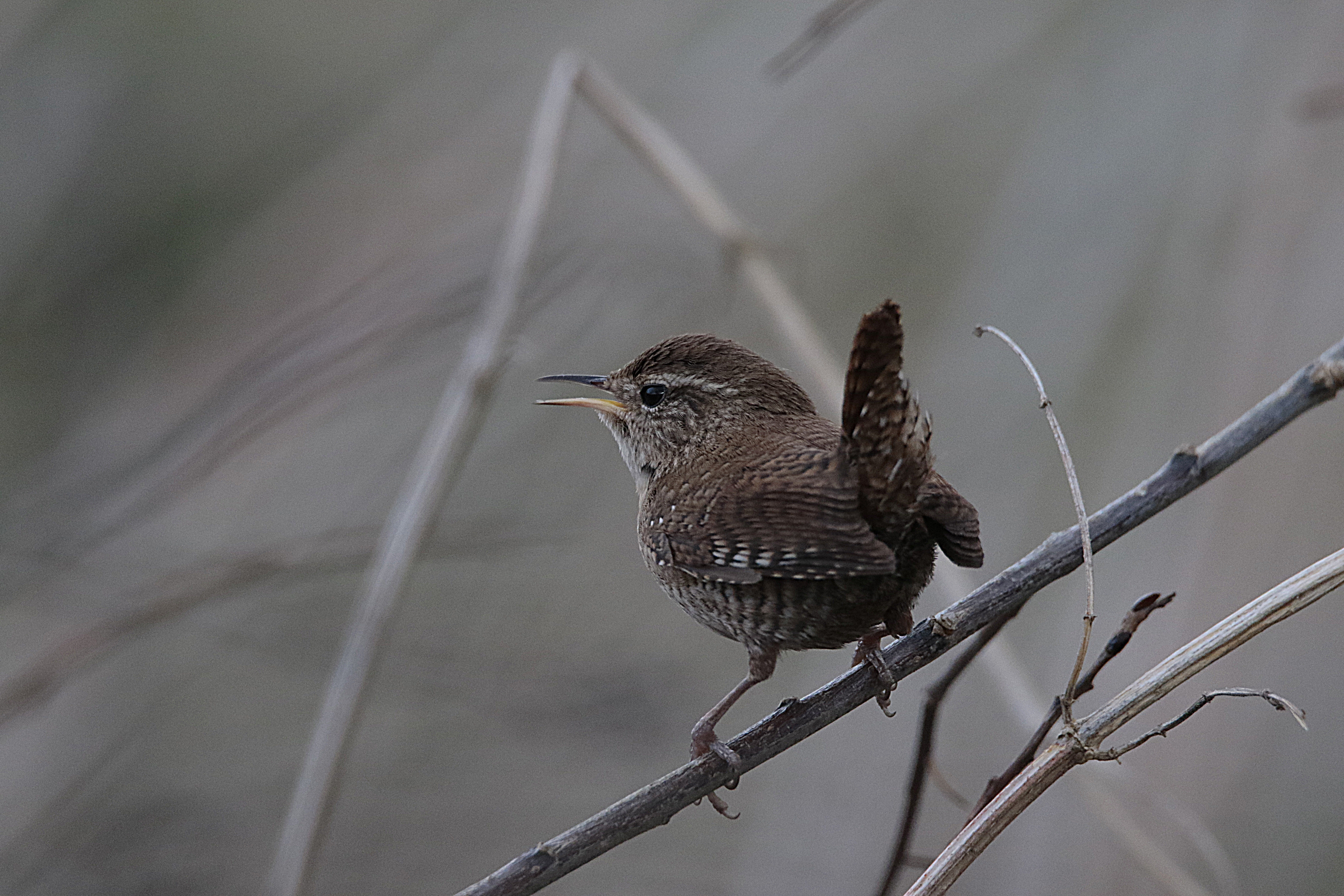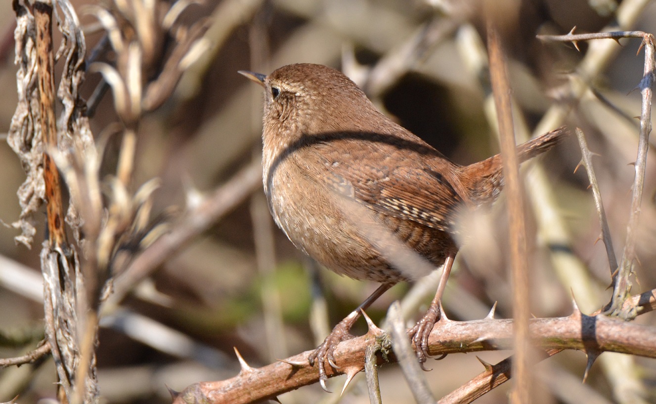 Très petit et rondelet, le Troglodyte mignon est aisément reconnaissable à son pelage brun roux, plus pâle dessous, et sa queue courte et relevée. Sa tête est ornée d’un sourcil pâle diffus. Il est très souvent entendu et repéré grâce à son chant, une série de trilles aigus et de notes fortes, très puissant pour un si petit oiseau?!