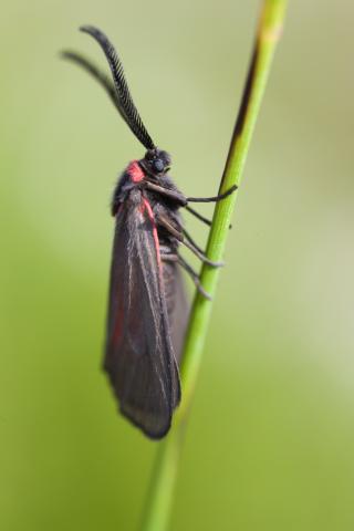 Il n’existe aucun risque de confusion concernant l’adulte, bien caractérisé par l’absence de trompe par la teinte rosée de son collier et des ailes postérieures, et par ses antérieures grises. Cependant, la fugacité de celui-ci et sa ressemblance avec les Adscita et Jordanita au stade imaginal contraignent à se rabattre sur la recherche des chenilles qui sont également très reconnaissables, avec leurs flancs jaunes et le dos noir violacé, différentes de celles de la Turquoise du Prunellier (Rhagades pruni).
