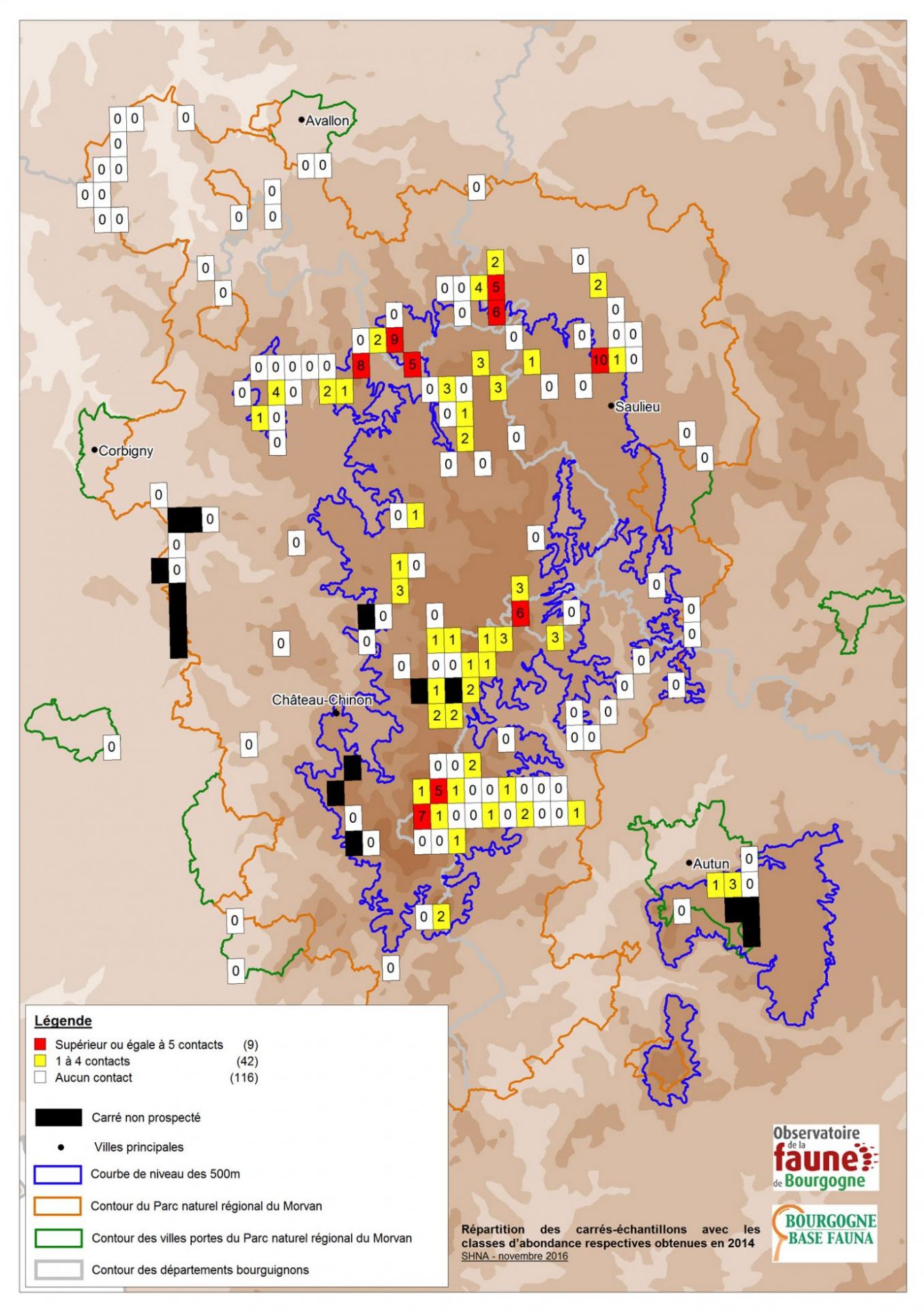En 2006, un suivi de la population nicheuse en Morvan est lancé dans le cadre du Projet Bécasse en Morvan initié par le PnrM, le Club National des Bécassiers (CNB 71), l’Office National de la Chasse et de la Faune Sauvage (ONCFS) et la SHNA-OFAB. Les objectifs de ce suivi sont de cartographier la répartition de la Bécasse en période de reproduction sur la territoire du Parc, d’étudier l’habitat sur les meilleurs sites pour pouvoir donner des recommandations de gestion ou de préservation du milieu, de suivre l’évolution des populations dans le temps et de faciliter les échanges entre différents acteurs régionaux des milieux naturels de Bourgogne. Le protocole de suivi pour le Morvan a été établi en 2006 à partir de celui mis en place au niveau national par l’ONCFS. Le suivi a depuis été renouvelé tous les 4 ans sur 167 carrés-échantillons répartis sur le territoire du Morvan.